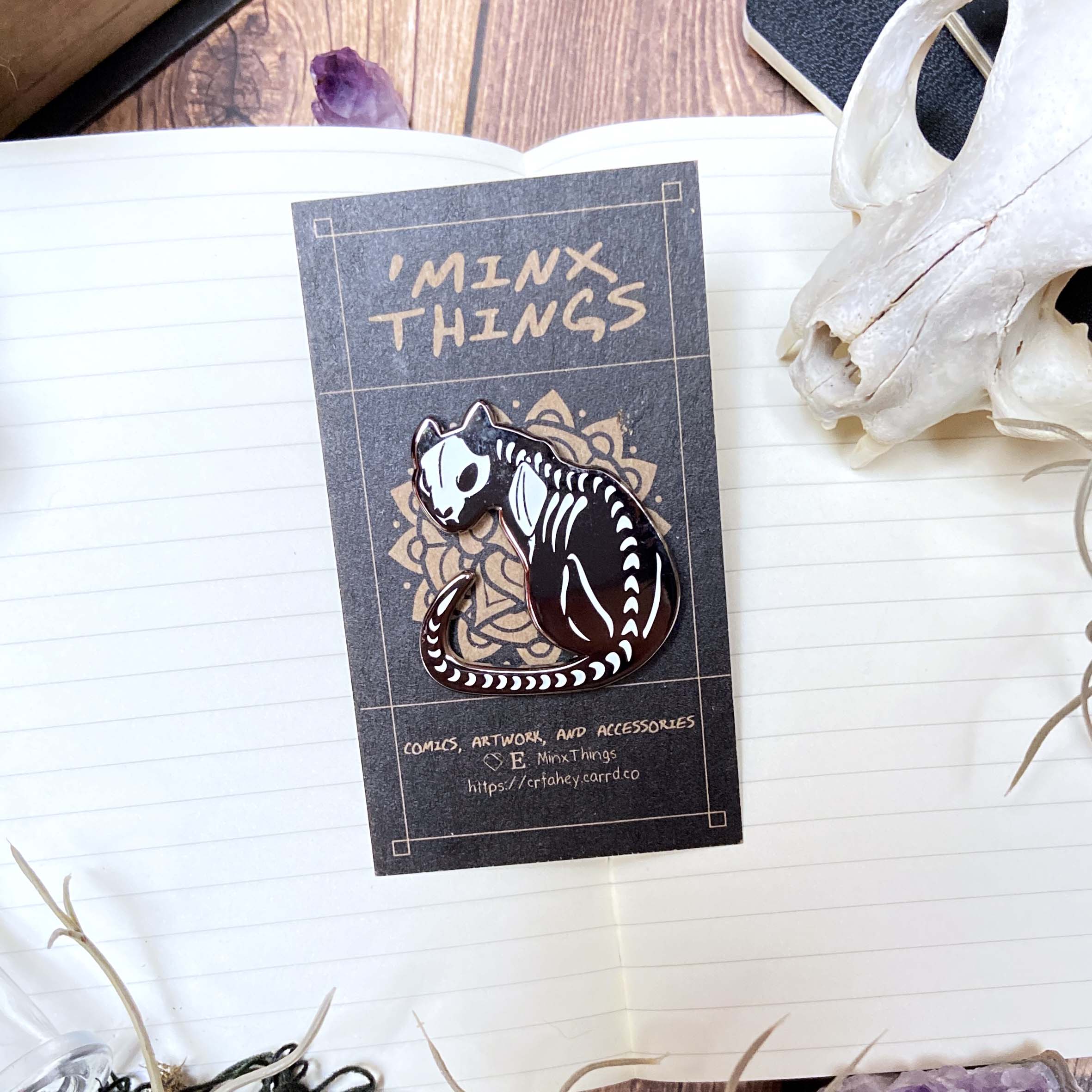 Black Cat Bones | Glow-in-the-Dark Cat Skeleton Hard Enamel Pin