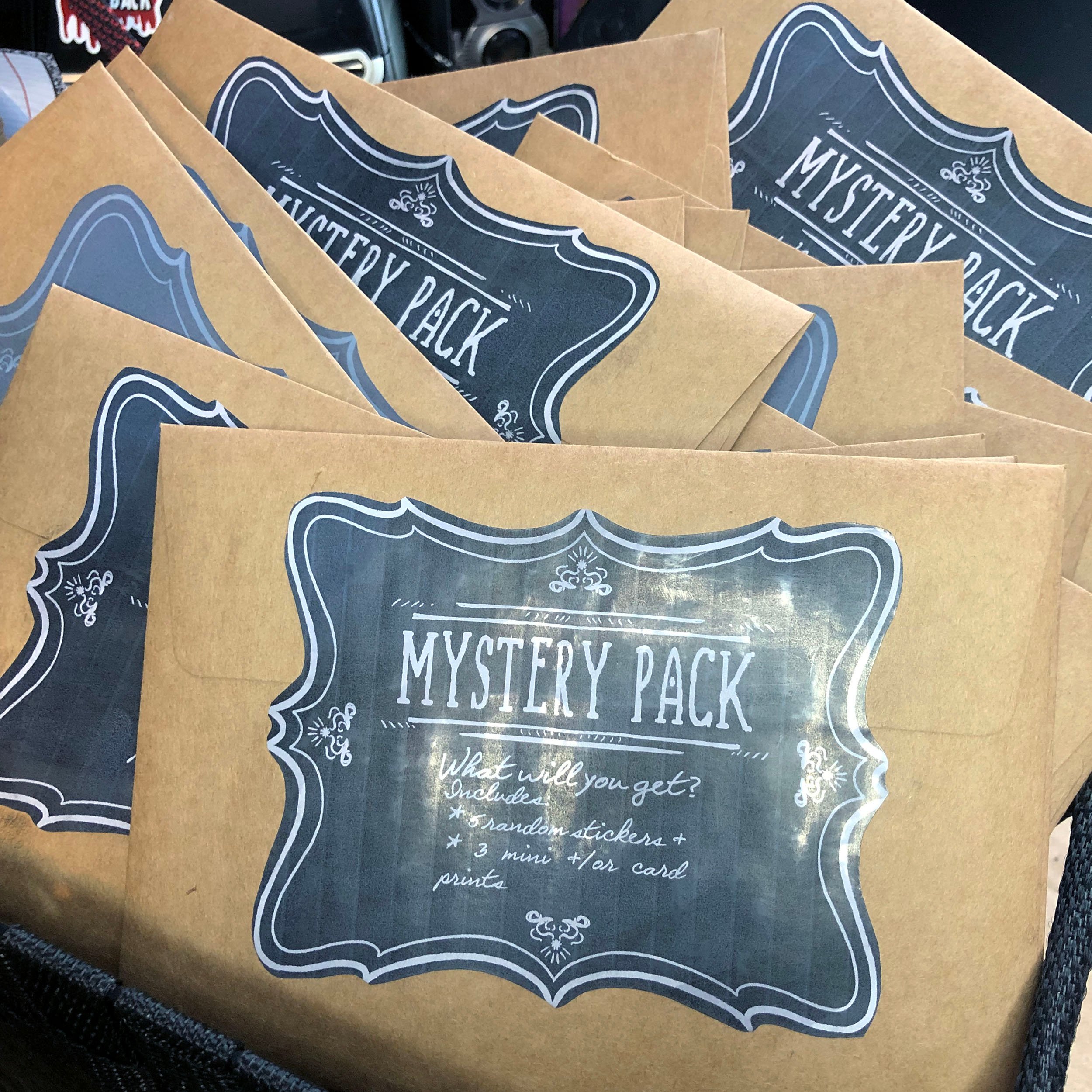 What could you get in a pack? Each envelope includes: **5 assorted stickers & **3 assorted postcard &/or 5"x7" mini-prints Typically a $15-20 value!